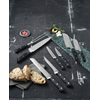 Varenavn: Lion Sabatier International Pluton Knivsæt 8 dele Stål/SortLabel conditional red: Label conditional black: Billede galleri: ![]() ![]() Beskrivelse: Pluton er en klassisk knivserie fra Lion Sabatier, der dækker ethvert behov i køkkenet. Serien har en optimal vægt og balance, der ligger behageligt i hånden. Dette sæt indeholder Kokkekniv 20 cm Brødkniv 20 cm Santokukniv 13 cm Santokukniv 18 cm Udbenerkniv 15 cm Takket multikniv 13 cm Urtekniv 9 cm Stegegaffel 15 cm • Den superskarpe klinge af high carbon stål 5Cr15MoV er ekstremt modstandsdygtigover for korrosion og andre påvirkninger. • Skaftet er produceret af Polyoxymethylene (POM), der er karakteriseret ved en meget hård overflade. • Skaftet er påsat med tre gennemgående stålnitter. • Undgå at vaske knivene i opvaskemaskine. Rockwell-hårdhed 53-57 HRC. Vejl. 2.899,95,- Vare nr. 36470 |